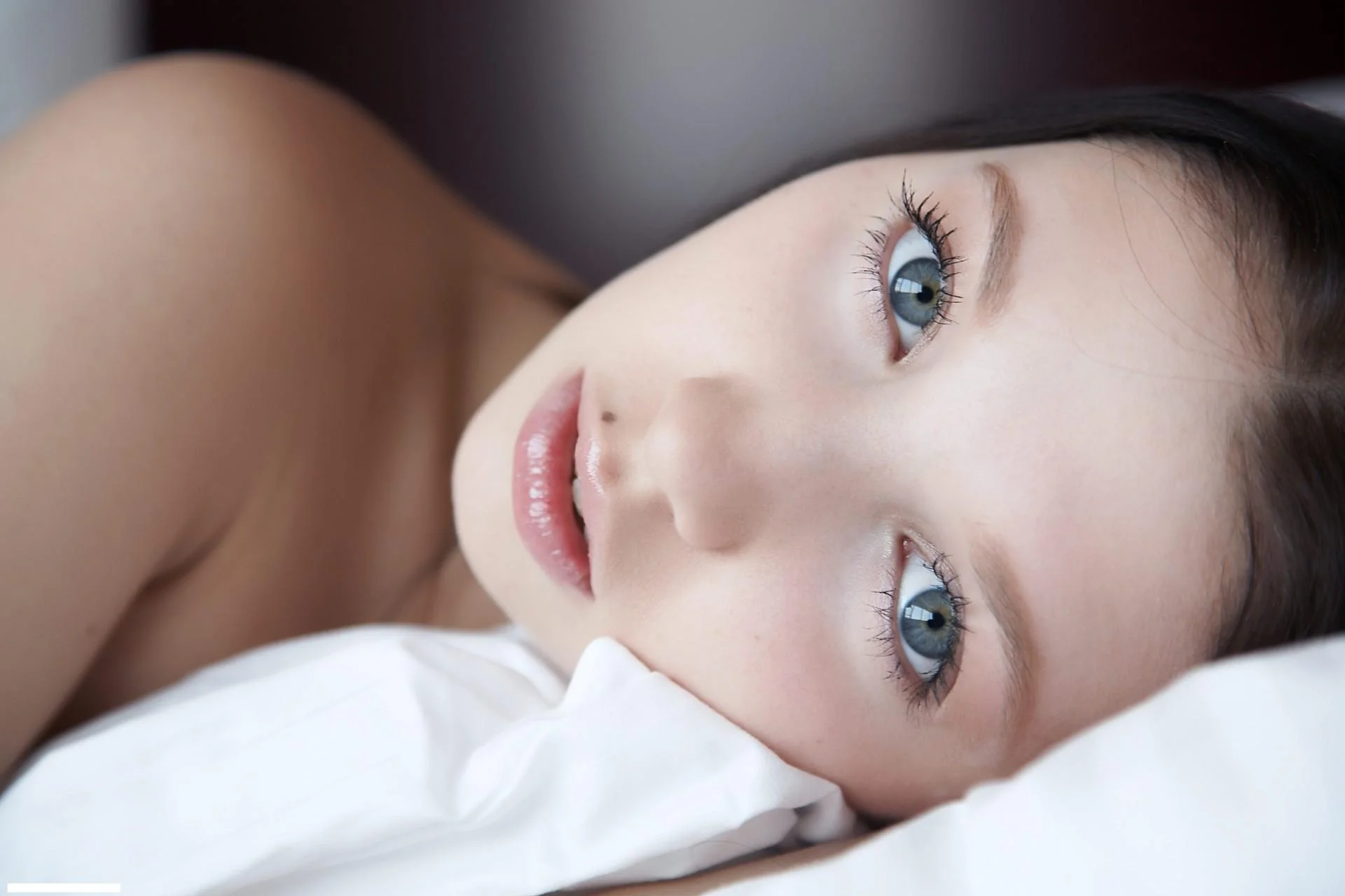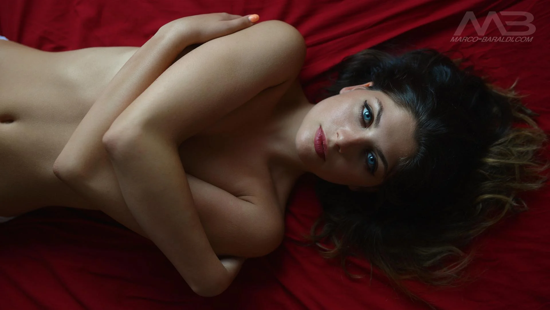Голубоглазая брюнетка ню