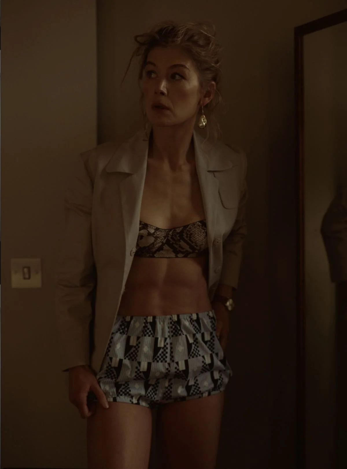 Английская актриса по имени Розамунд Пайк, блондинка с приятной внешностью и обаятельной улыбкой. Девушка снималась во многих фильмах, одним из которых является «Джек Ричер» с Томом Крузом. Но поклонники этой актрисы, все время хотят увидеть от нее больше откровений. Особенно им нравится смотреть на фотографии, где можно лицезреть как голая Розамунд Пайк демонстрирует прелести своего тела. Ее ножки, талия и аппетитная попка, достойны того, чтобы на них любовались мужчины и парни.