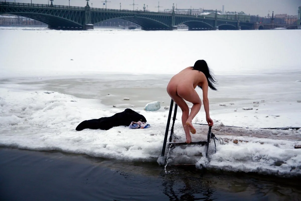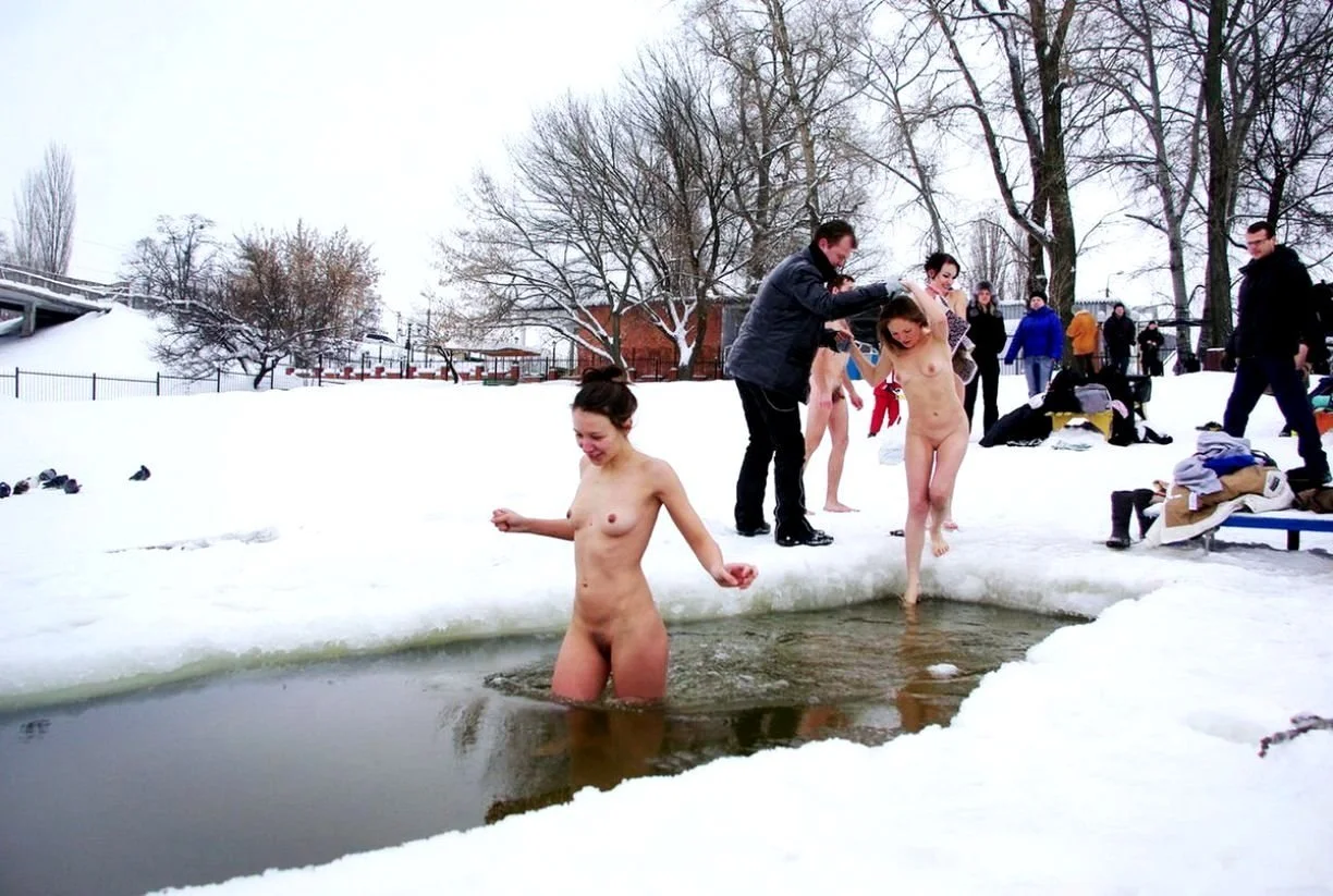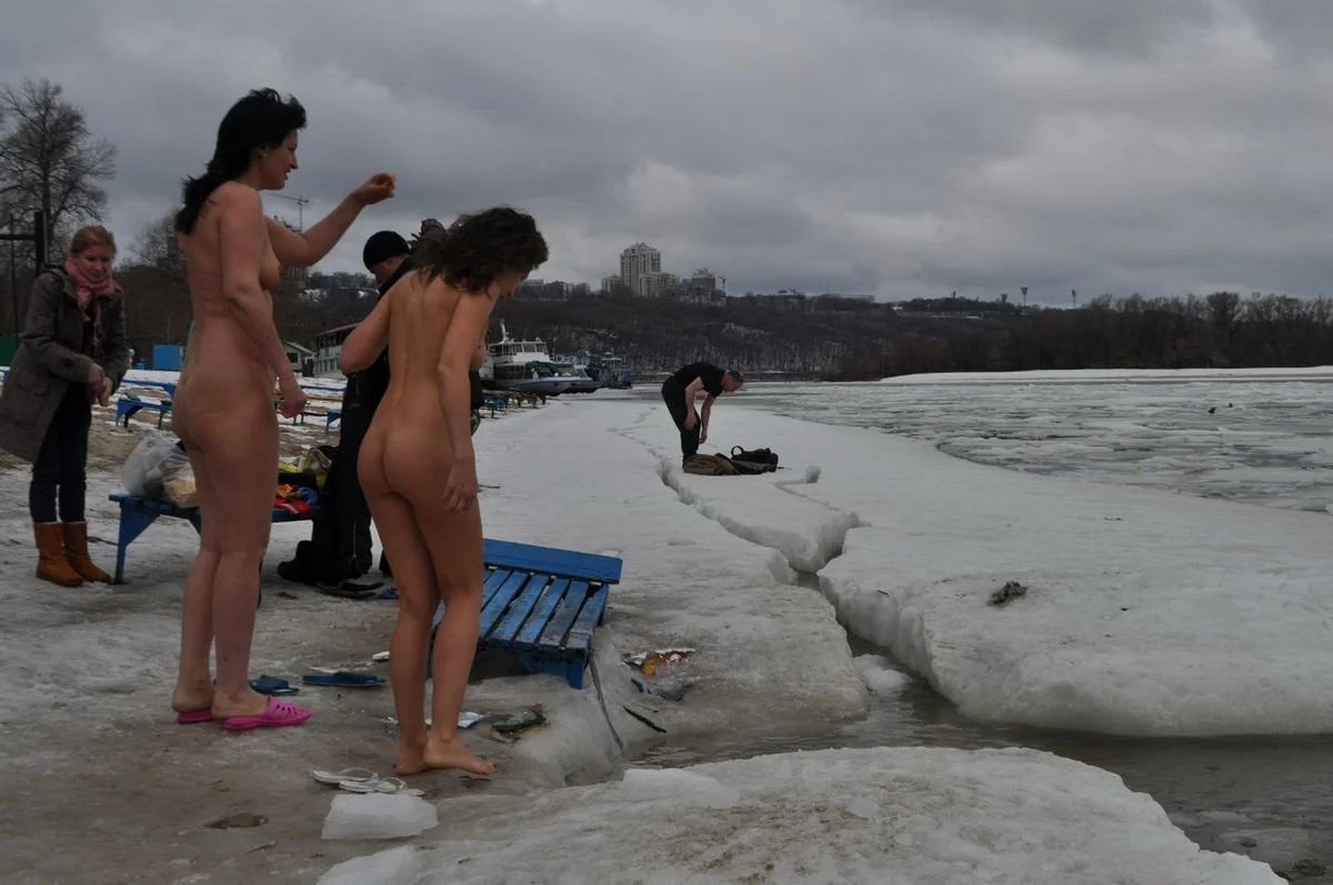 Фото эротика / Раздетые девушки / Голые девушки купаются зимой