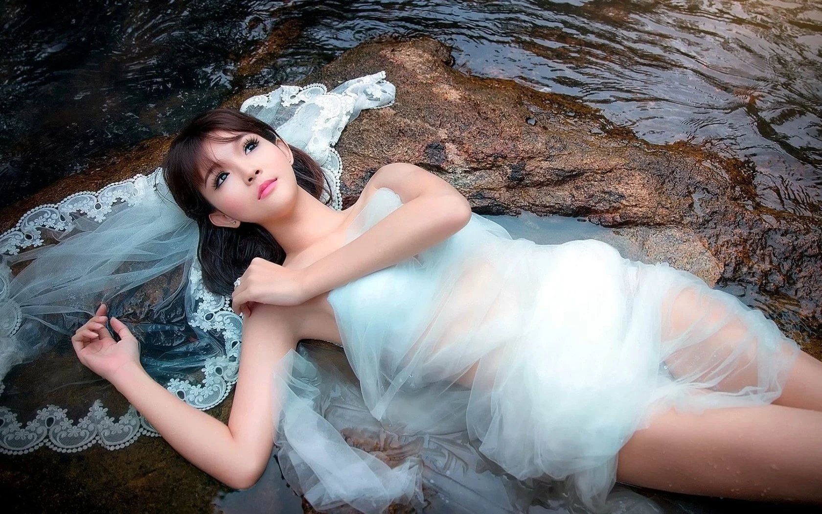 Азиатка в белом платье