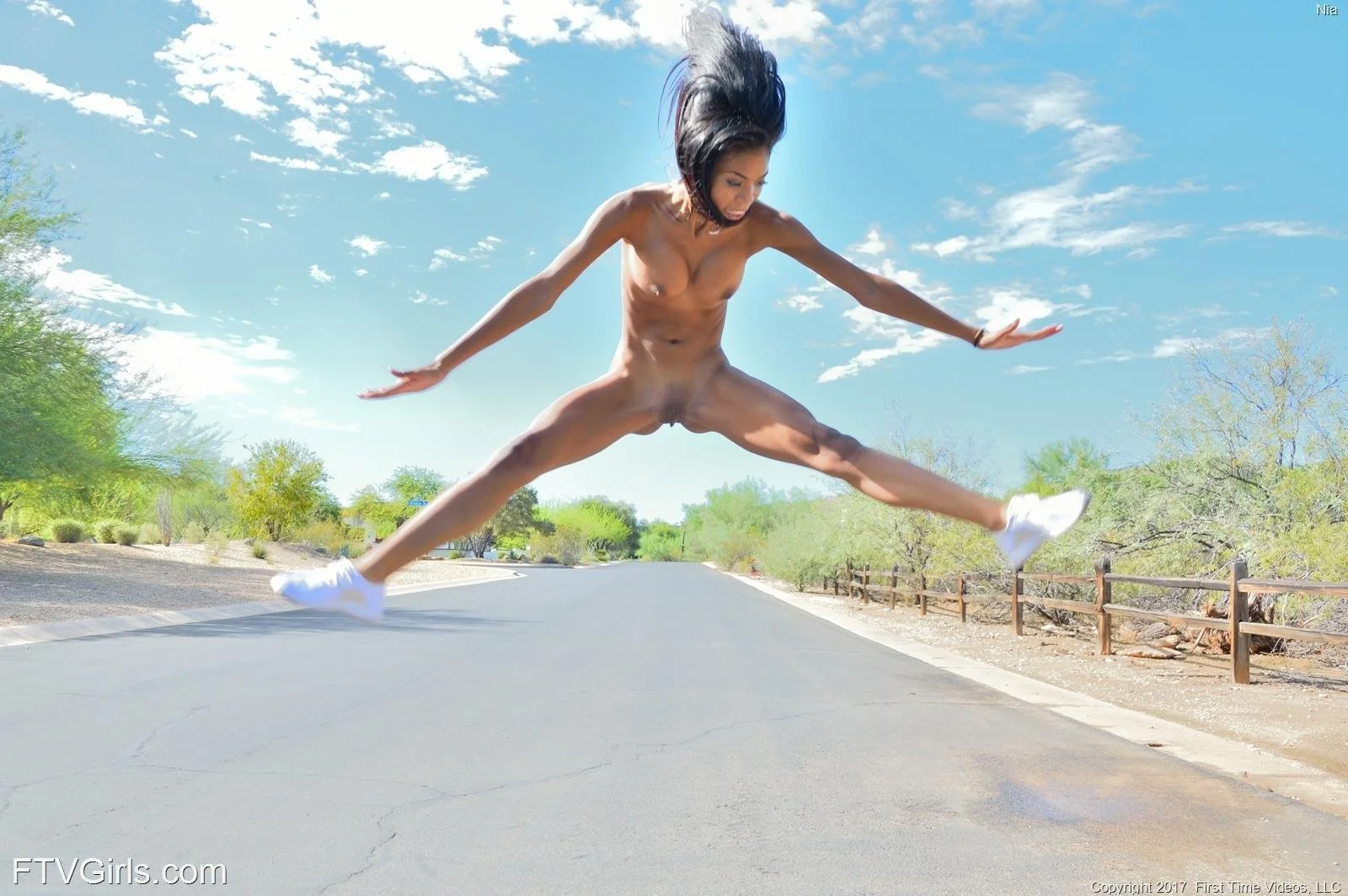 Голая гимнастка в прыжке