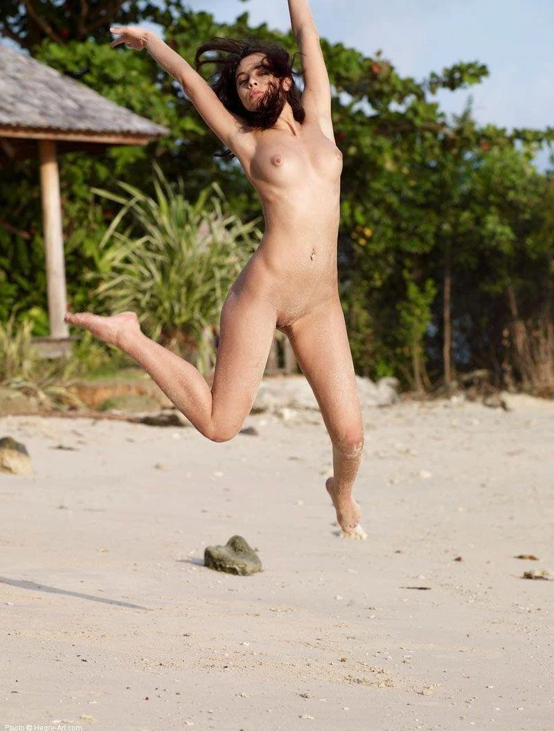 Фото: Голая красотка прыгает
