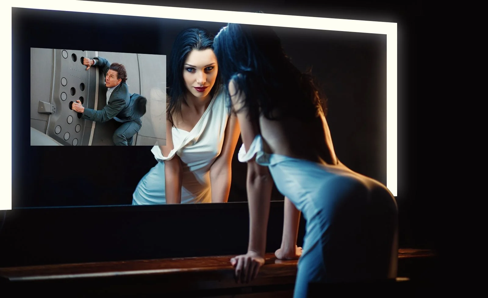 Отражение телевизора в зеркале