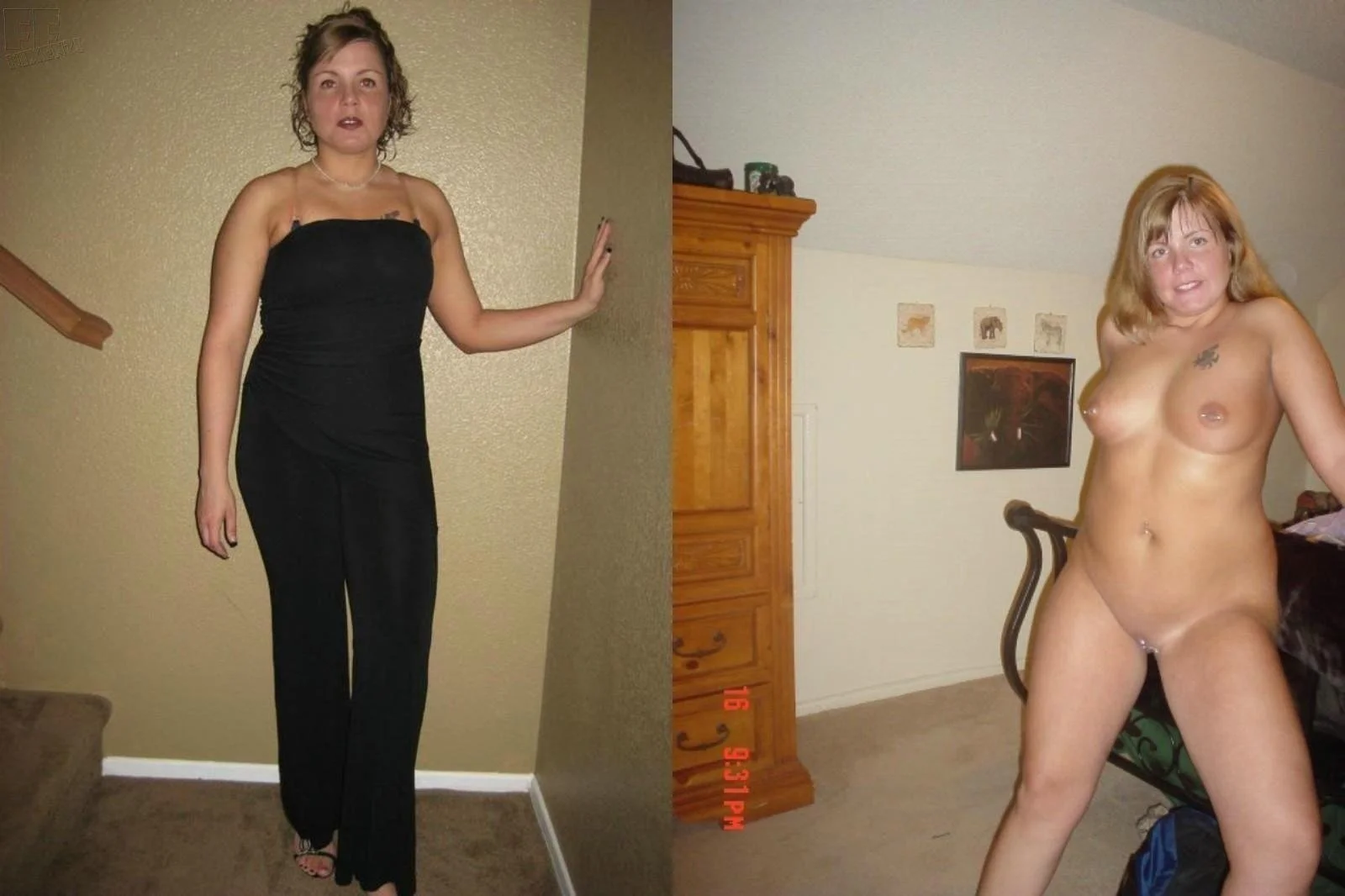 Жена в одежде и без одежды
