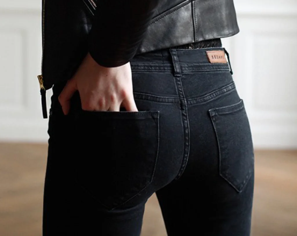 Попа в черных джинсах