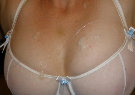 Cum between breasts in a bra