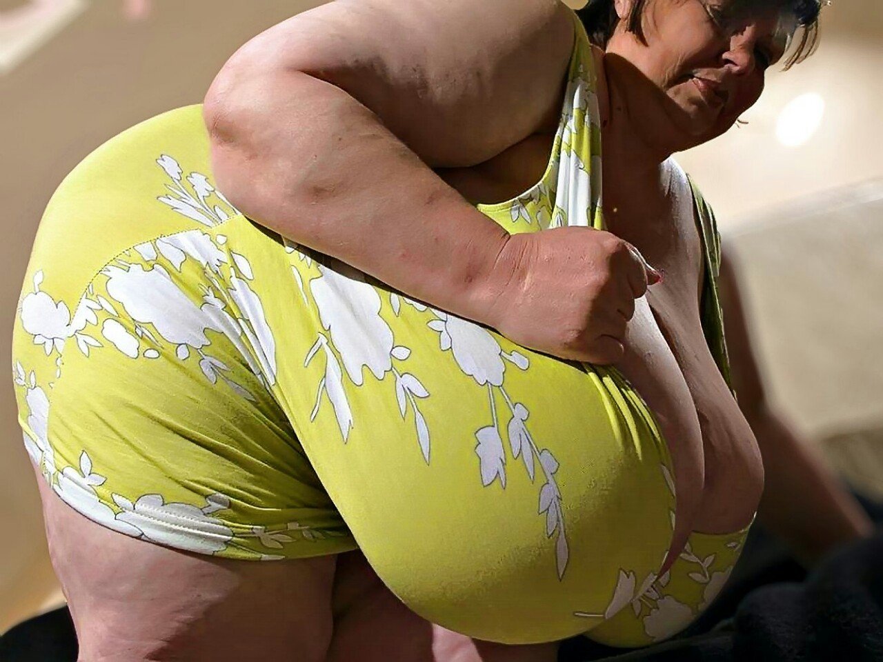 Tits of a fat woman top to bottom view