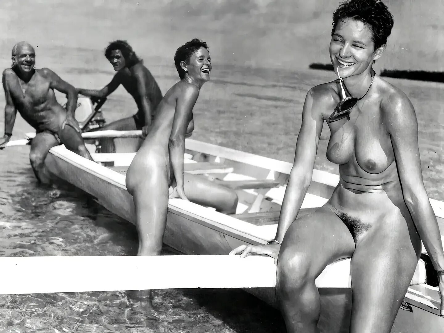 Naked girls on the beach retro
