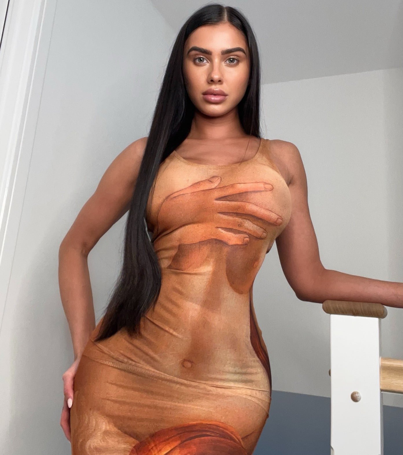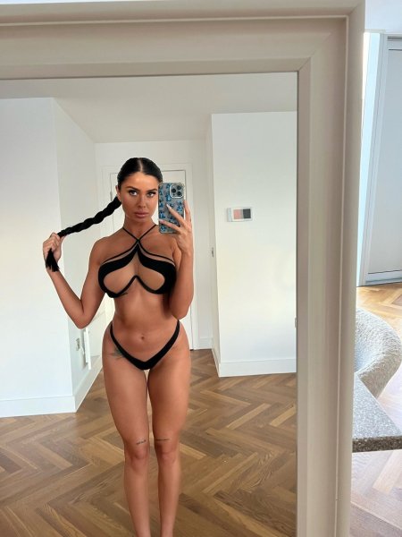 Naked Lana Rhoades in a swimsuit