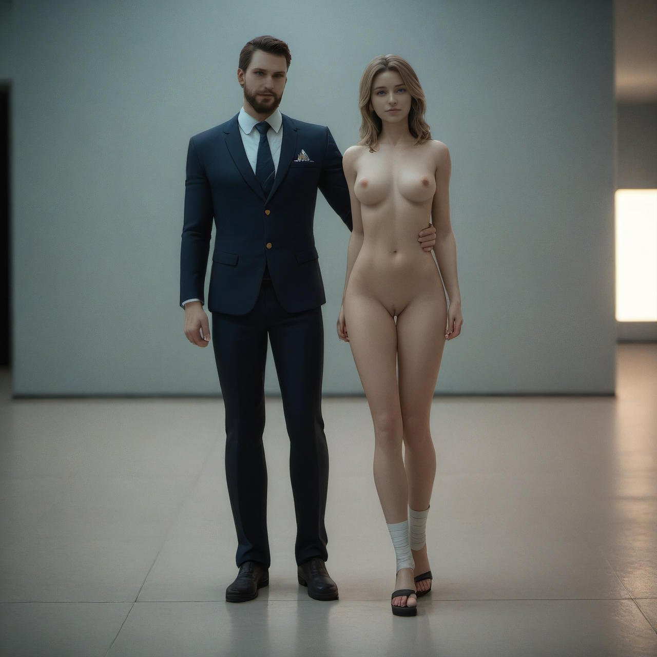 Naked woman among men