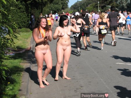 Naked women in crowded places