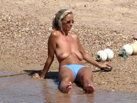 Mature saggy tits on the beach
