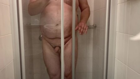 Man washes in the shower naked