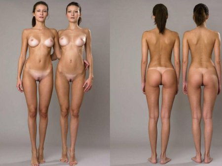 Naked women look in front and back